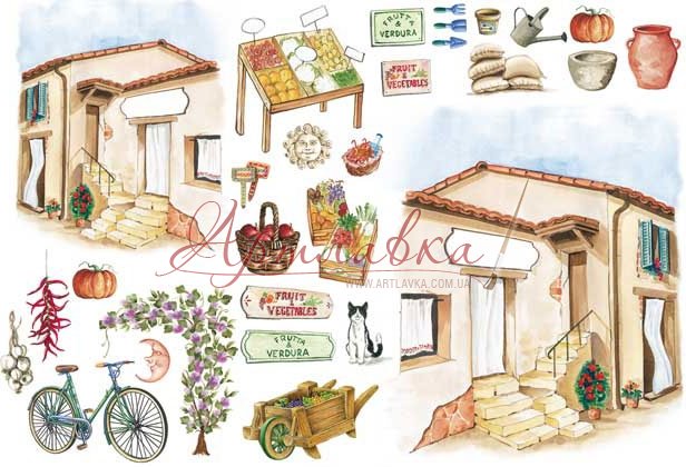 Серветка декупажна з рисового паперу "Будиночок в Італії",35*50см