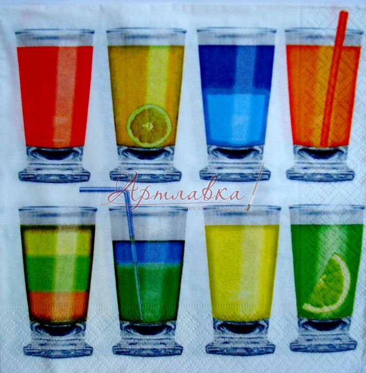 Головна › Декупажна серветка "Коктейлі", 33*33см