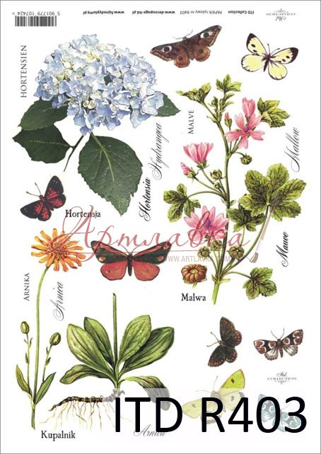 Головна › Рисова декупажна карта "На літньому лузі - 1", 20х30см