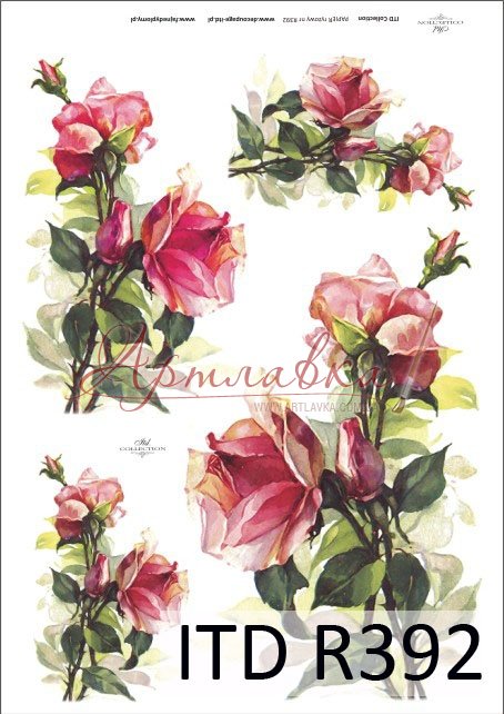 Головна › Рисова декупажна карта "Рози - 2", 20х30см