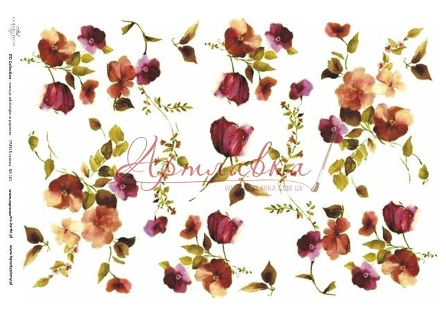 Рисова декупажна карта "Червоні квіти", 20х30см