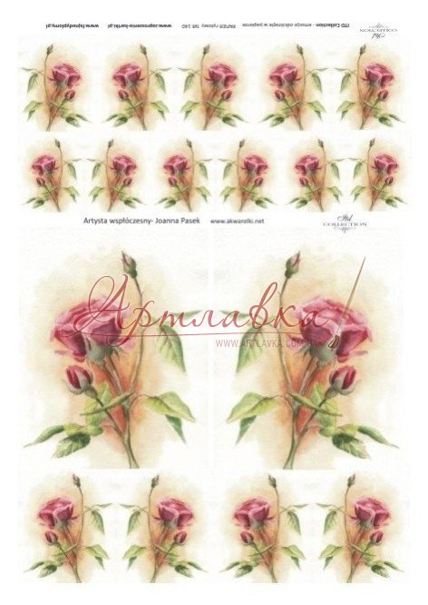 Рисова декупажна карта "Рози Джоани Пасік", 20х30см