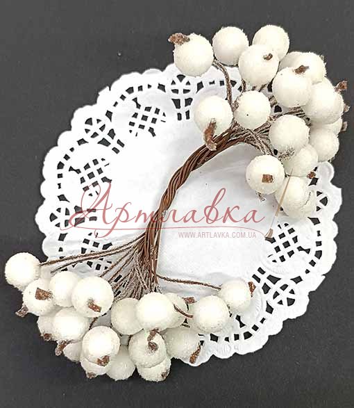 У наборі ягідки на дроті з морозним ефектом. У наборі 40 ягідок. Такі ефектні ягідки вигідно прикрасять будь-який віночок або ободочек справжньої модниці