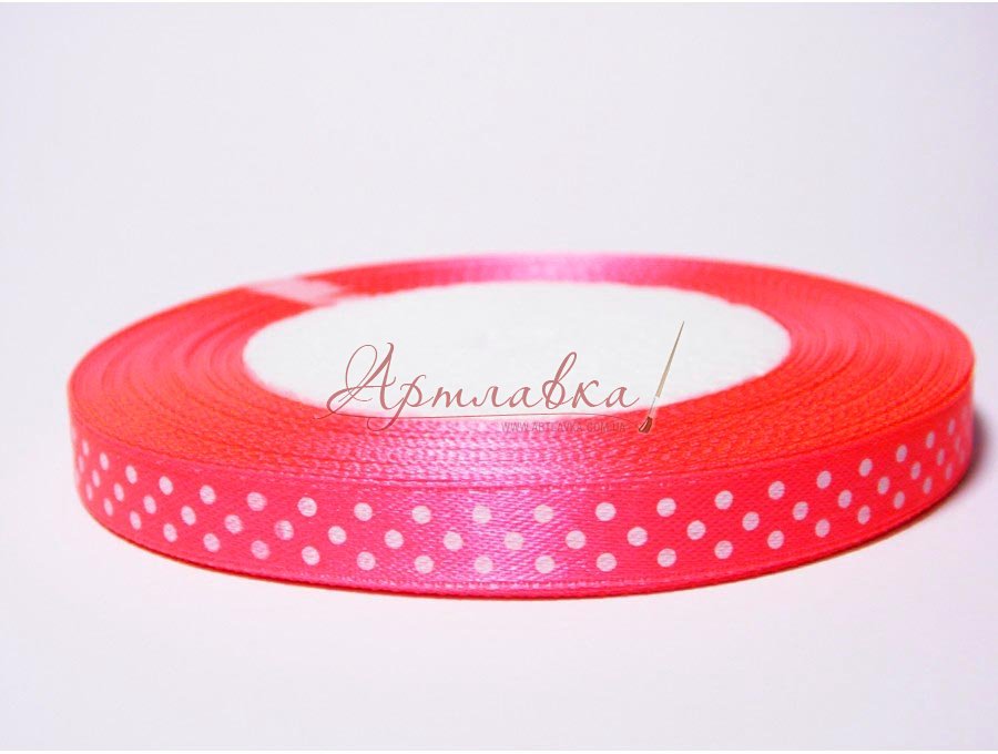 Стрічка атласна у горошок, Червона, 1см, 1м