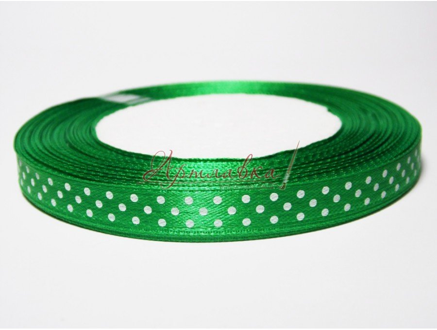 Стрічка атласна в горошок, Зелена, 1см, 1м