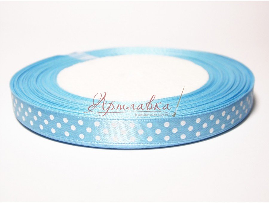 Стрічка атласна в горошок, Блакитна, 1см, 1м