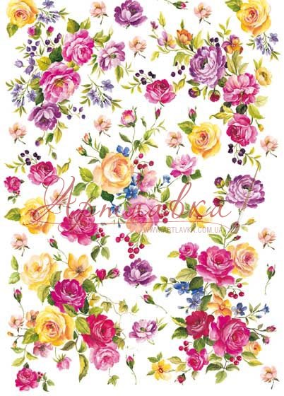 Декупажна карта "Різнобарвні троянди", 60г/м, 50*70см