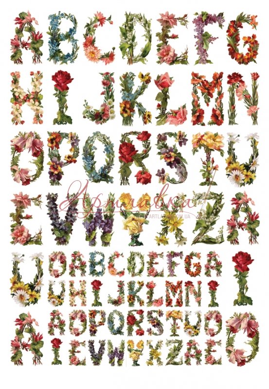 Серветка декупажна з рисового паперу "Квіткова абетка",35*50см