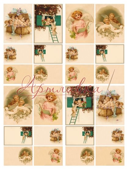 Рисова декупажна карта "Листівки "Янголятка"", 35*50см