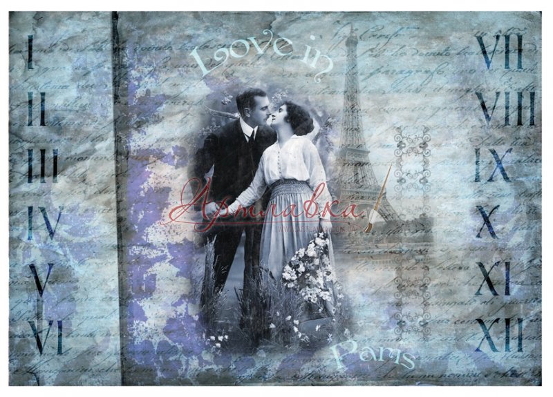 Рисова декупажна карта "Любов у Парижу", 35*50см