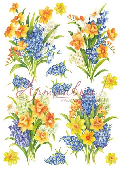 Серветка декупажна з рисового паперу "Нарциси й желтофіоль",35*50см